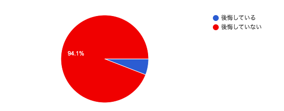 ご協力いただいた17名のうち、実に94.1%の人が社会人留学をしたことについて「後悔していない」と回答しました。